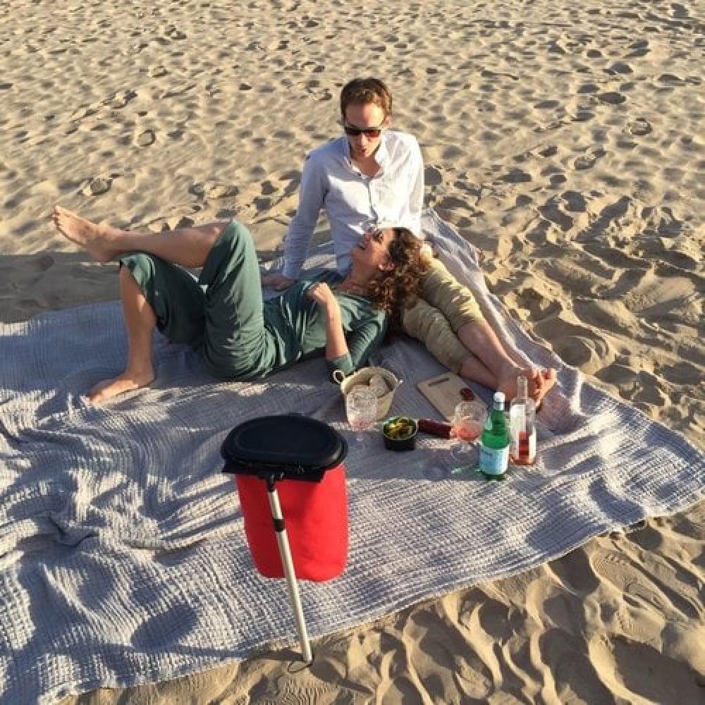 Flextrash Autumn Red maat S bevat een design top deksel, een stoffen coverbag en een biologisch afbreekbare trashbag.