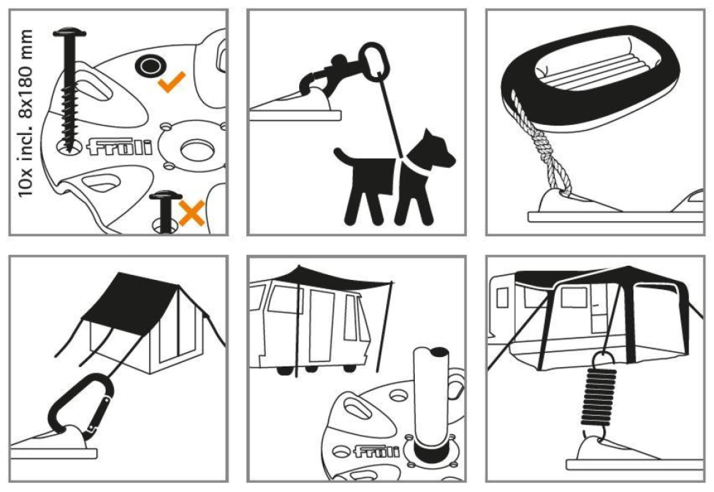 Set bevat: 2 ankerplaten en 10 bevestigingsschroeven (8x180mm)