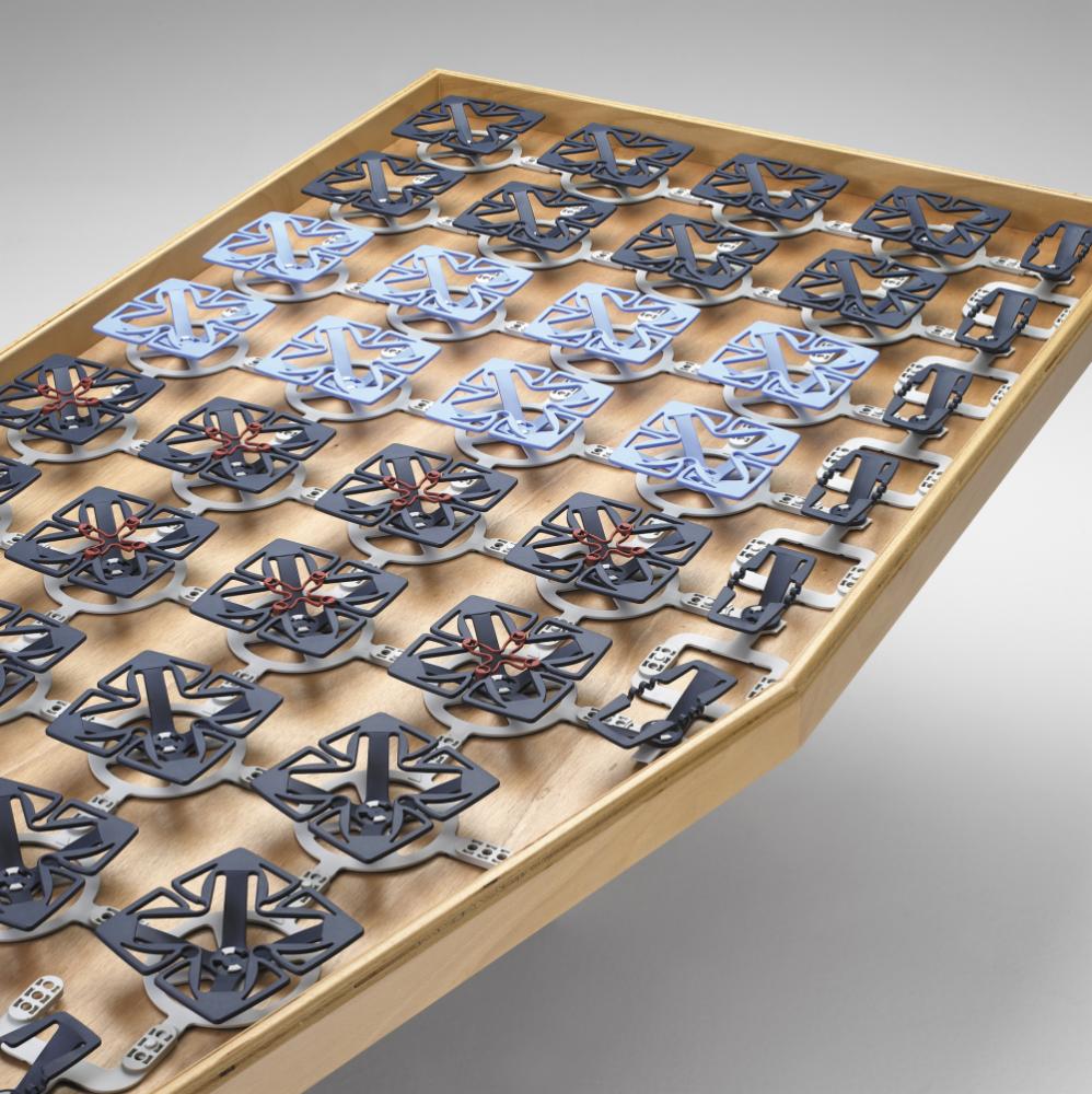 Een standaard pakket bestaat uit 48 basiskruizen, 40 standaard veerelementen, 8 soft veerelementen en 8 spankruisjes. Het systeem weegt 2.6kg per m².