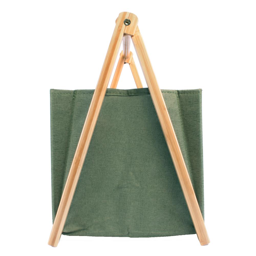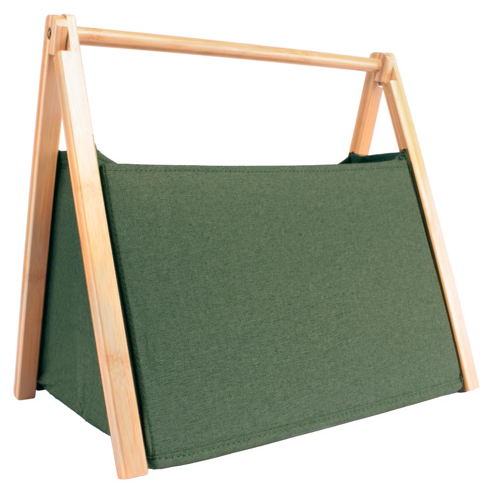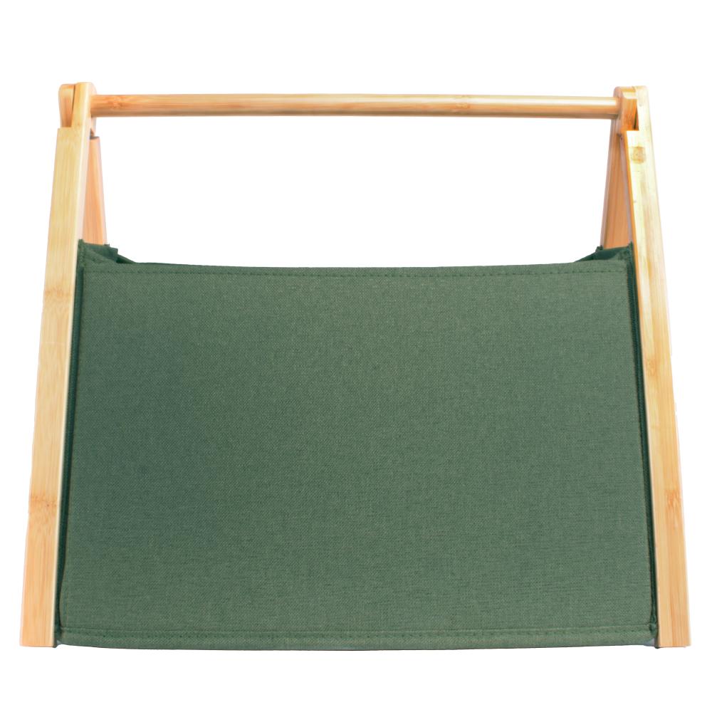 Het krantenbakje is gemaakt van stevige duurzame stof en een bamboe frame.